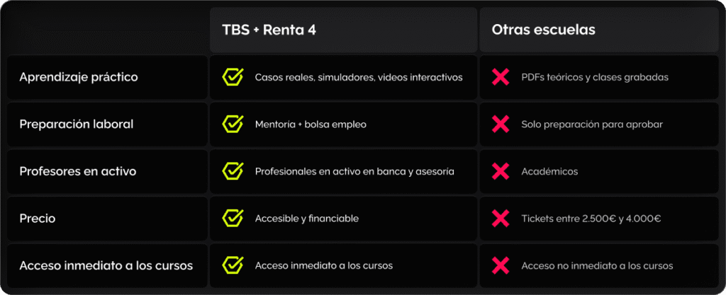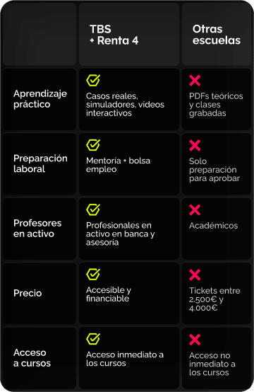- Enfrentarte a procesos de selección con una certificación reconocida y un aval directo de Renta 4 Banco.